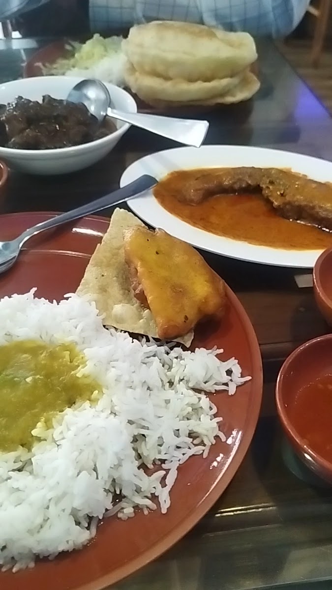 Went for a family dinner. Place was good, well lighted sitting area, service was fast. Thalis are a better option to eat. Veg thali starts at Rs100 which comes with steam rice, beguni, sukhto, jackfruit sabzi, dal, aam chutney, papad. Add meat and fish items are reasonable in comparison to quantity and quality. The mutton Kosha is a must try here.